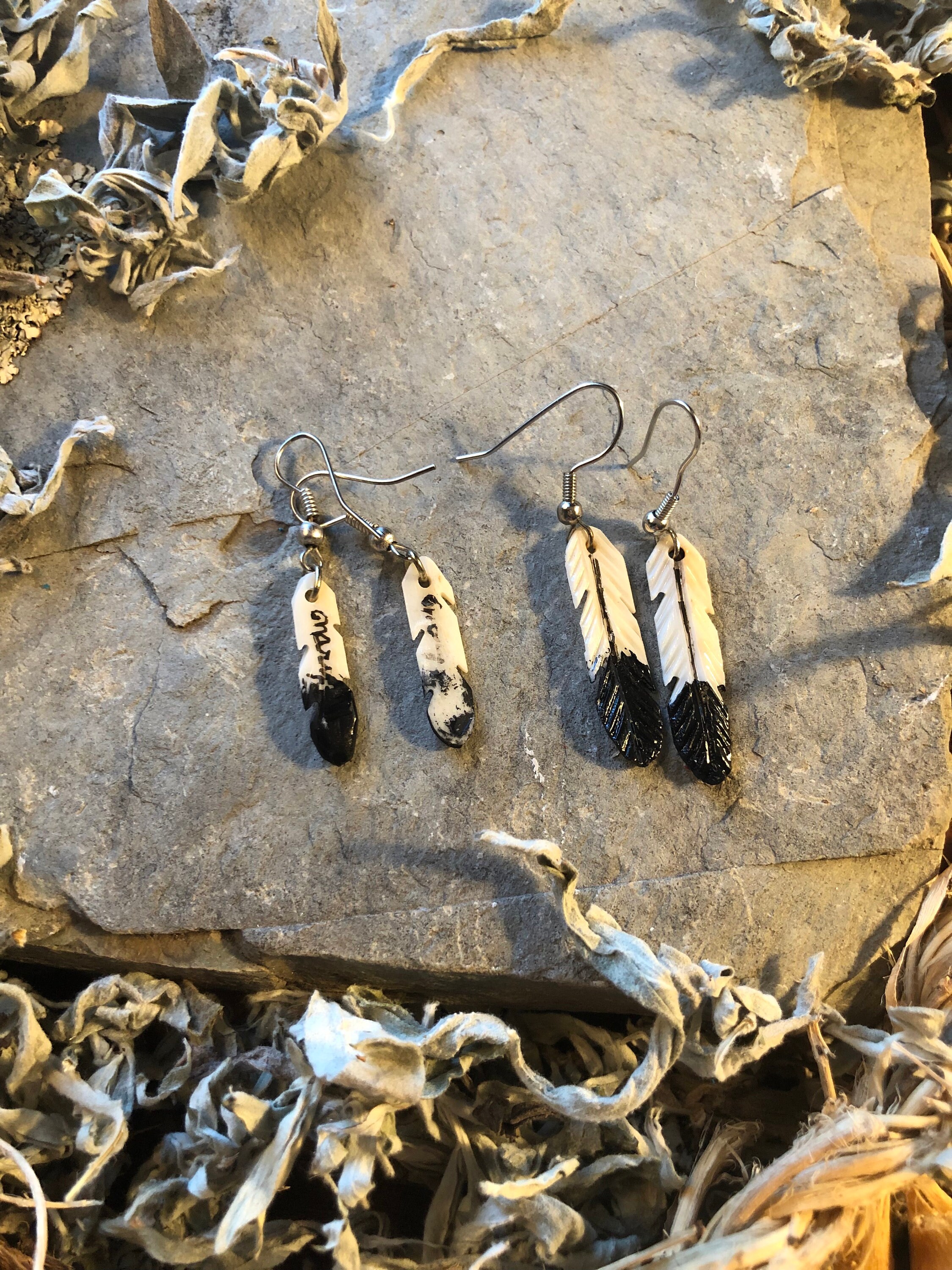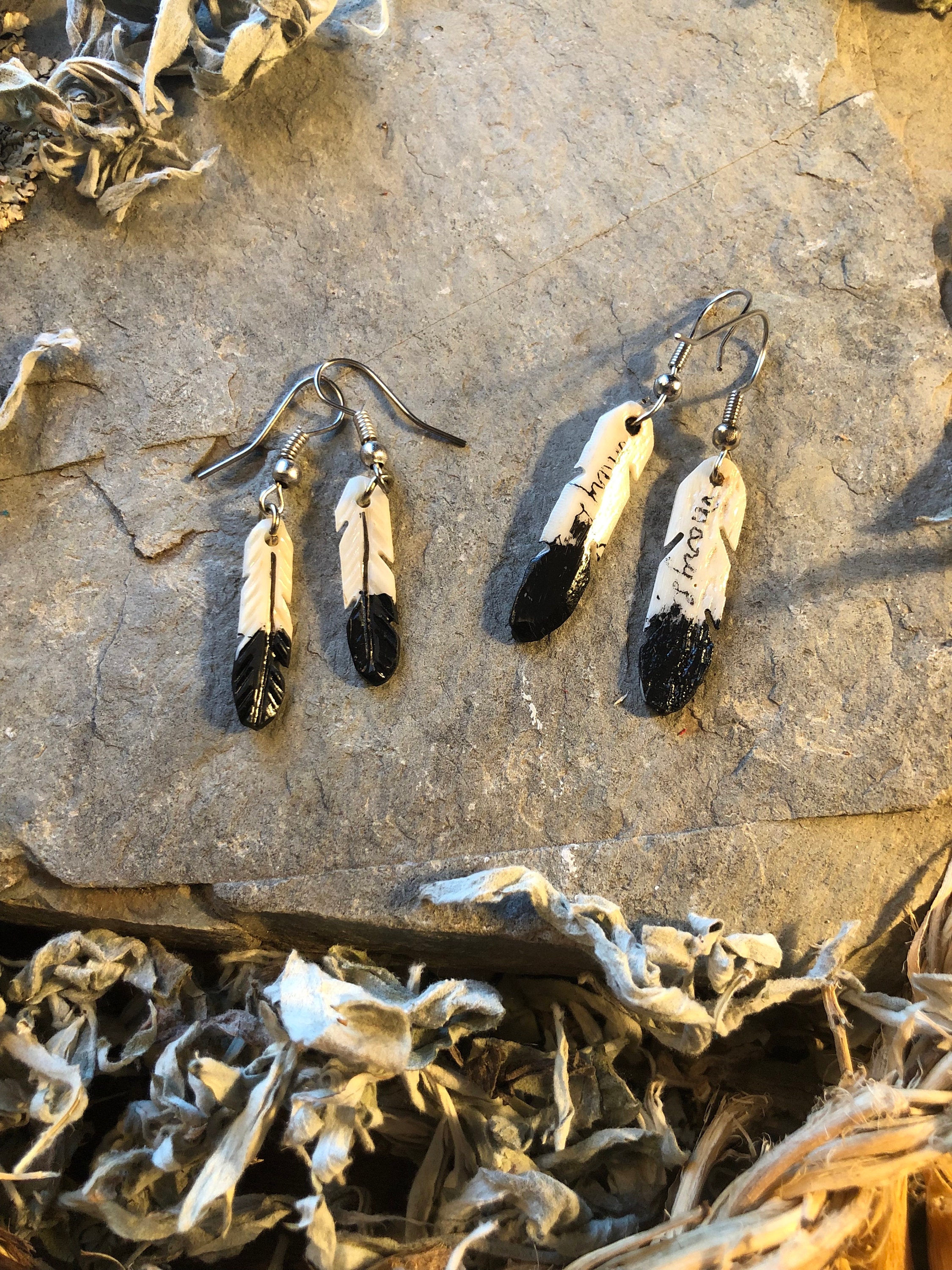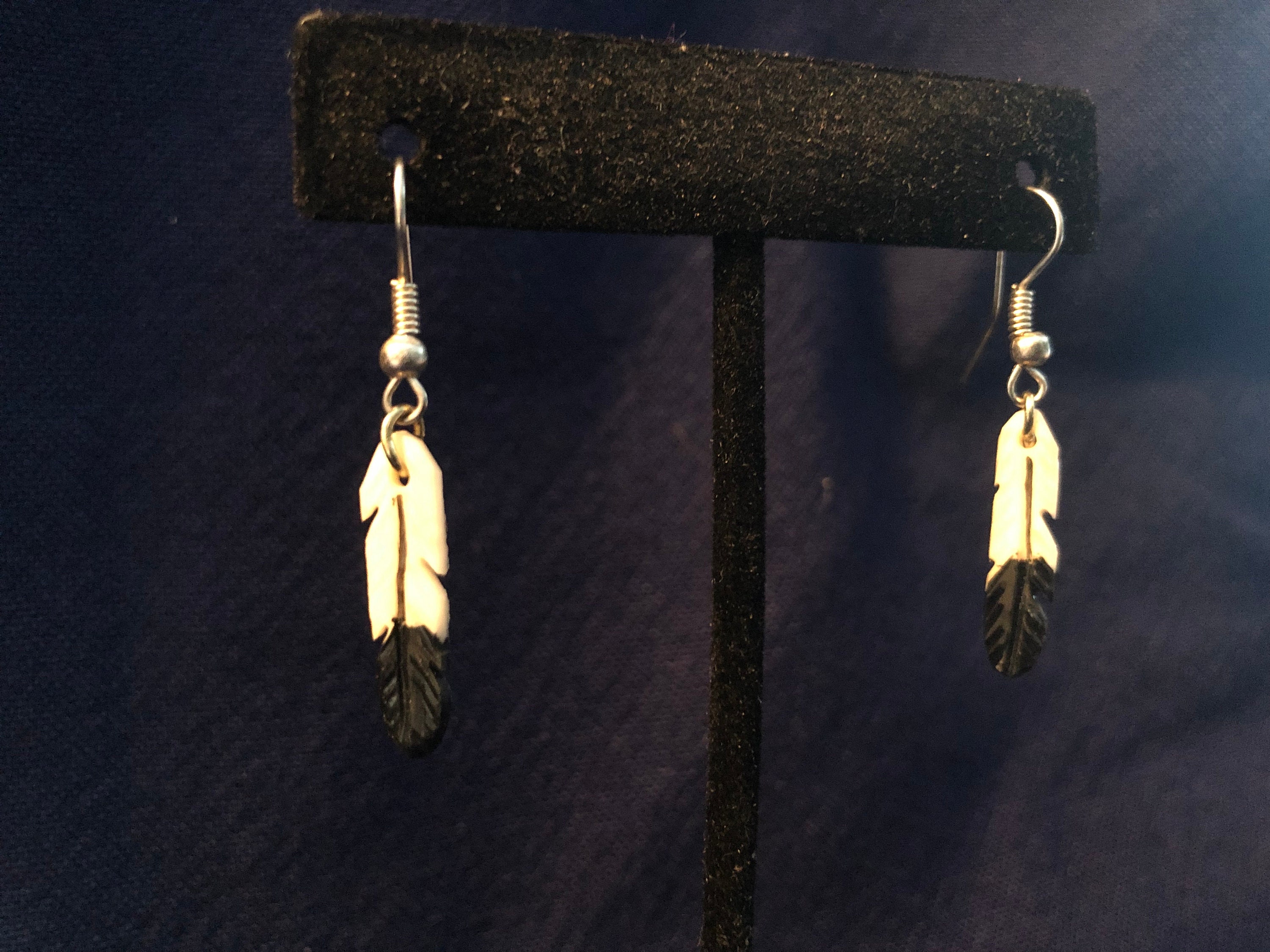 These beautiful, handmade eagle feather earrings are produced by Tribal Crafts member Mary Lu Griffith. Each earring is signed by the artist on the back.